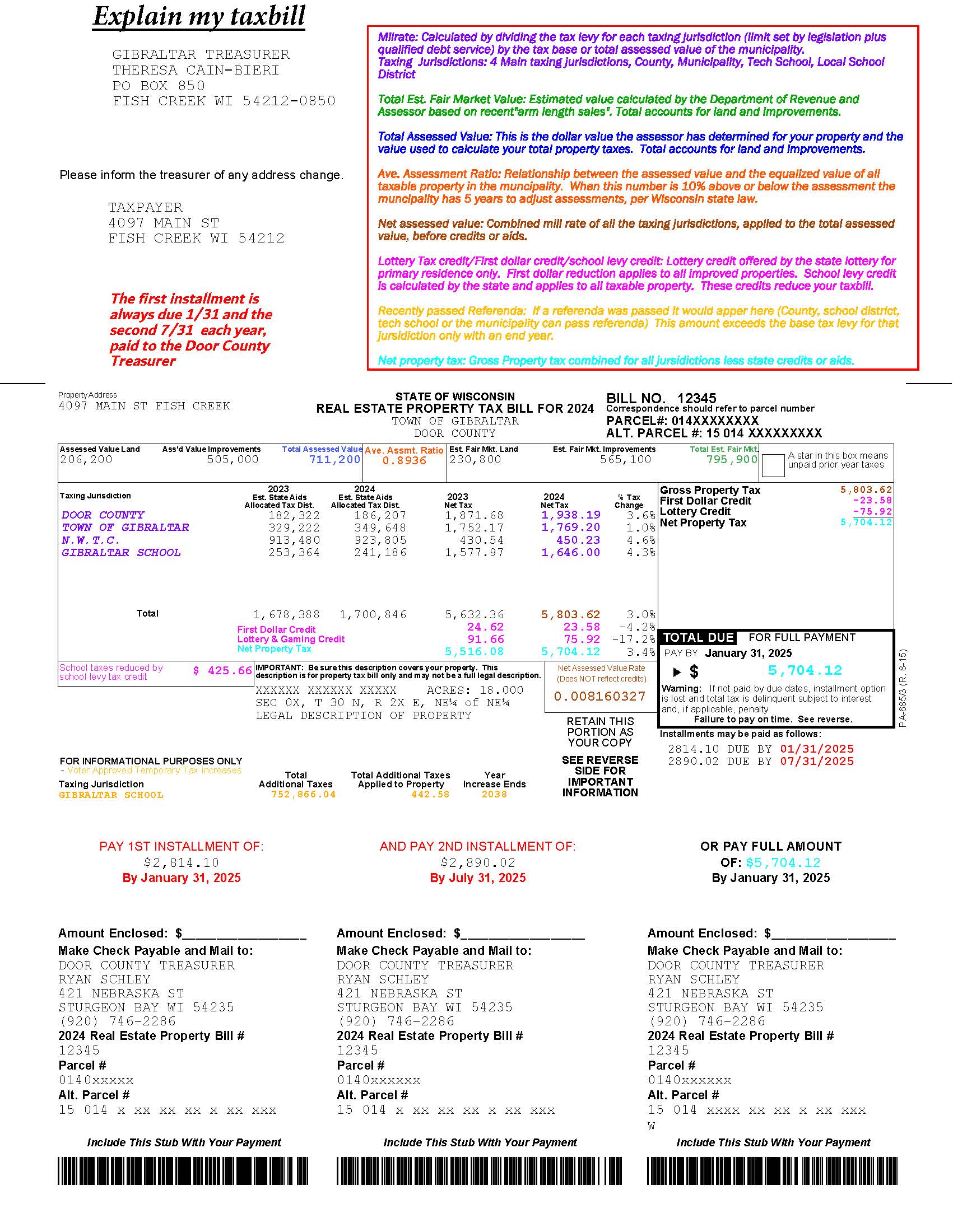 Tax bills will be mailed mid-December, watch your mailboxes.