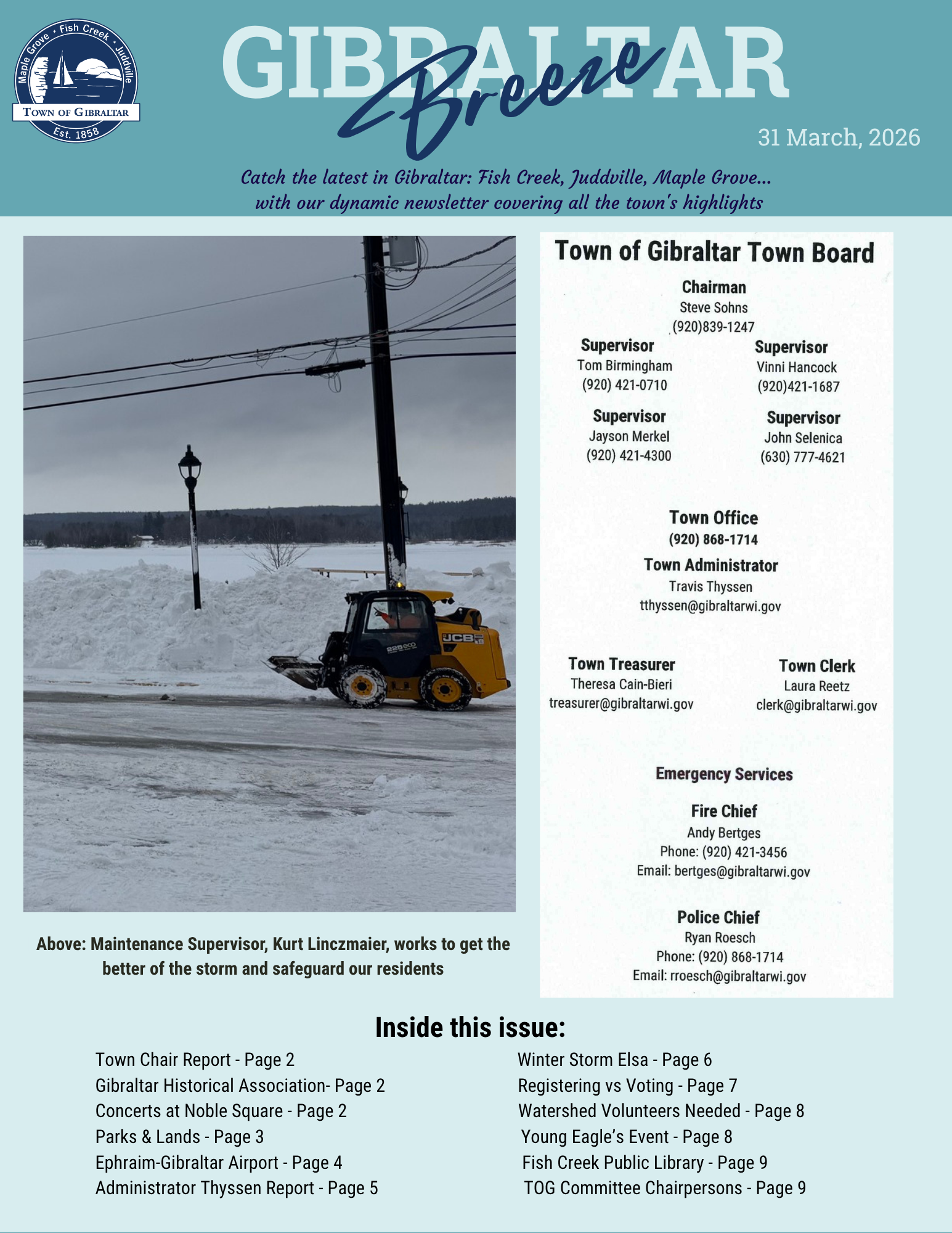 To read previous issues of the Town of Gibraltar newsletter click on the links below.